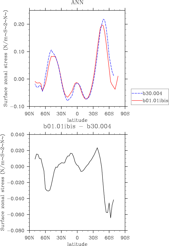 TAUX OCEAN * Zonal surface stress (ocean) plot plot plot