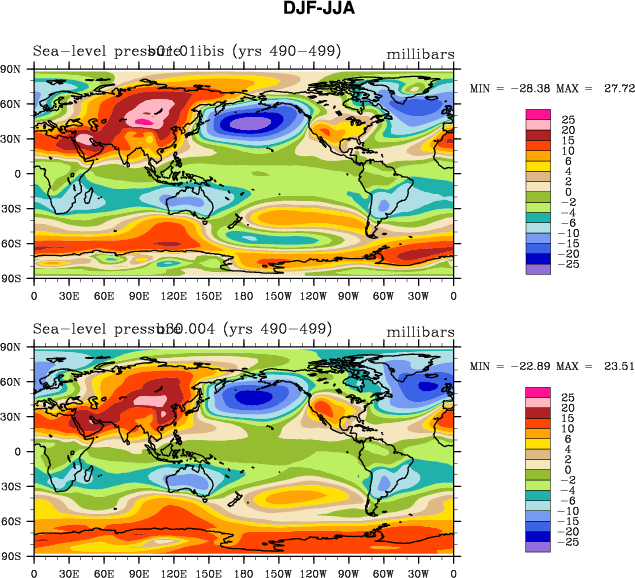 DIAG Set 9 - Horizontal contour plots of DJF-JJA differences