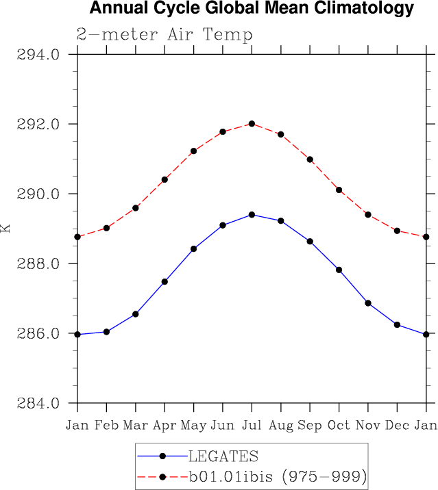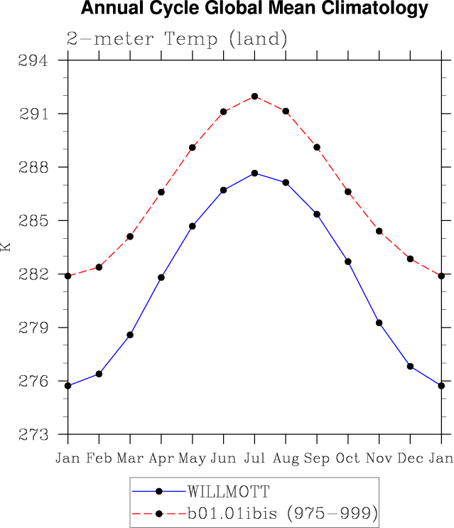 TREFHT 2-meter air temperature (land) plot